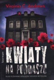 Streszczenie: 1CZĘŚĆ CYKLU - Szczęśliwą z pozoru rodzinę Dollangangerów spotyka tragedia - w wypadku samochodowym ginie ojciec. Matka z czwórką dzieci zostaje bez środków do życia i wraca do swego rodzinnego domu. Niezwykle bogaci rodzice mieszkający w ogromnej posiadłości, wyrzekli się córki z powodu jej małżeństwa z bliskim krewnym, a narodzone z tego związku dzieci uważają za przeklęte. W tajemnicy przed dziadkiem rodzeństwo zostaje umieszczone na poddaszu, którego nigdy nie opuszcza. Dzieci żyją w ciągłym strachu, a odkrycie, jakiego dokonuje najstarszy brat, stawia rodzeństwo w obliczu nieuniknionej katastrofy. Virginia C. Andrews (1923-1986) - amerykańska autorka bestsellerowej sagi o Dollangangerach, w skład której oprócz "Kwiatów na poddaszu" wchodzą: 2)"Płatki na wietrze", 3)"A jeśli ciernie",4) "Kto wiatr sieje" i 5)"Ogród cieni". KONTYNUACJA W POWIEŚCI: "Płatki na wietrze"