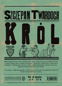 Szczepan Twardoch, Król Powieść Szczepana Twardocha „Król”to jedna z najgłośniejszych premier jesieni 2016 r. i czwarty tytuł tego autora w naszych zbiorach. Książka jest chwilami brutalna i pełna wulgaryzmów, a jednak czyta się ją wartko i docenia niewątpliwy talent narracyjny pisarza. Ciekawość budzi już okładka stylistyką przypominająca wydania utworów przedwojennych. Akcja toczy się w Warszawie, głównie w okolicach Nalewek,